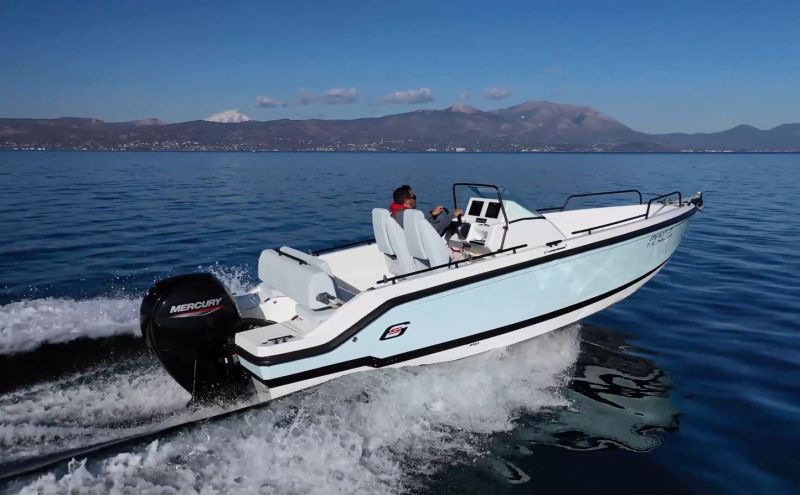 Dotari standard: chila culoare/gelcoat alb, consola centrala cu parbriz, scaune cu sezut rabatabil( pilot/co-pilot), scara retractabila, rola ancora, mana curenta prova+pupa, tacheti set complet de tapiterie, rezervor 130 litri, lumini navigatie, pompa automata de santina 500GPH, priza 12V USB, heblu, instalatie electrica 12V, extensii swimplatform